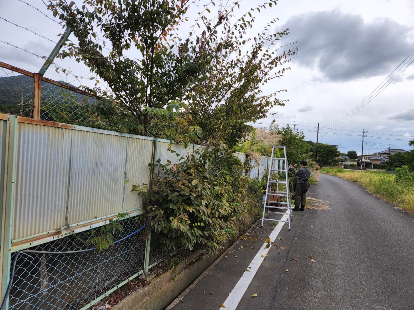 学校の外の塀周り整備・外にはみ出した枝切