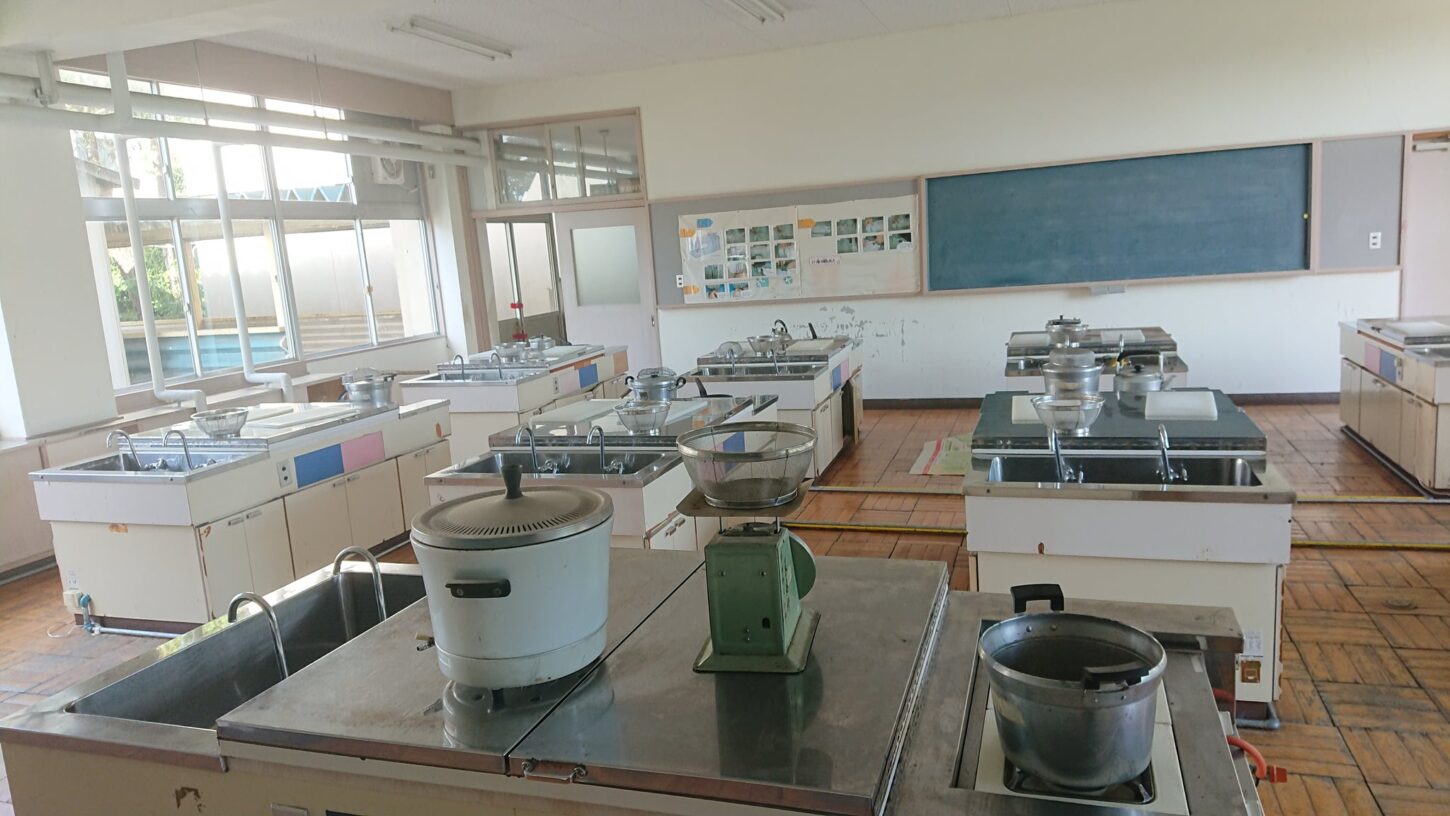 学校スタジオ・調理実習室・家庭科室・ガス台・ガスレンジ・点火・ガスボンベ・職員室・基本飾り込・小道具・高校生用教室・アトリエミカミ管理運営・ロケ地・桜川市・真壁町・ドラマ・映画・ミュージックビデオ・撮影場所・東京近郊・屋上・出口