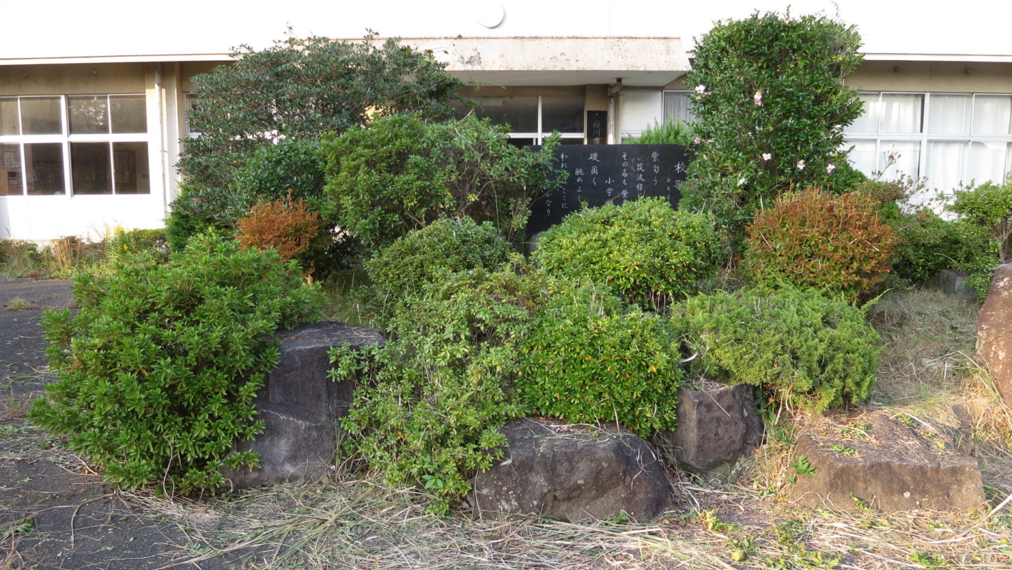 2. IMG_4504まるごと撮影で使える学校スタジオ・正面玄関前・植木・校歌石碑・雑草駆除・メンテナンス